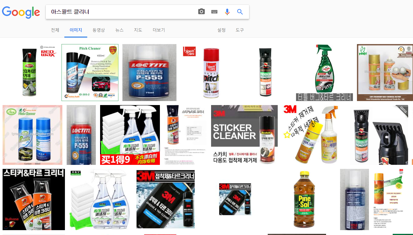 위 사진은 '구글'에 '아스팔트 클리너'를 검색한 것입니다. 사진만 보셔도 왜 답인지 아시겠죠?